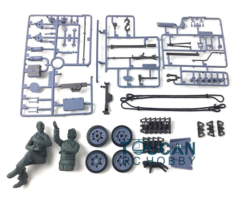 Für alle RC-Panzer-Fans: Dieses Dekoteile-Set macht deinen Henglong Stug III noch authentischer! Hier kriegst du die Extras, die deinem 1:16 Modell den letzten Schliff geben. Egal ob du deinen Panzer aufwerten willst oder Ersatzteile benötigst - mit diesen Kunststoffteilen wird's was! Perfekt abgestimmt auf den deutschen Stug III Panzer, passen die Teile genau und sind einfach zu montieren. Damit wird dein ferngesteuerter Panzer nicht nur funktional, sondern sieht auch noch mega aus. Super für Sammler und Modellbau-Fans, die Wert auf Details legen. Ob für die Vitrine oder für Geländefahrten - mit diesen Teilen macht das Hobby noch mehr Spaß! Einfach in der Handhabung und genau das, was dein RC-Panzer braucht. Hol dir das komplette Erlebnis für dein Henglong-Modell!