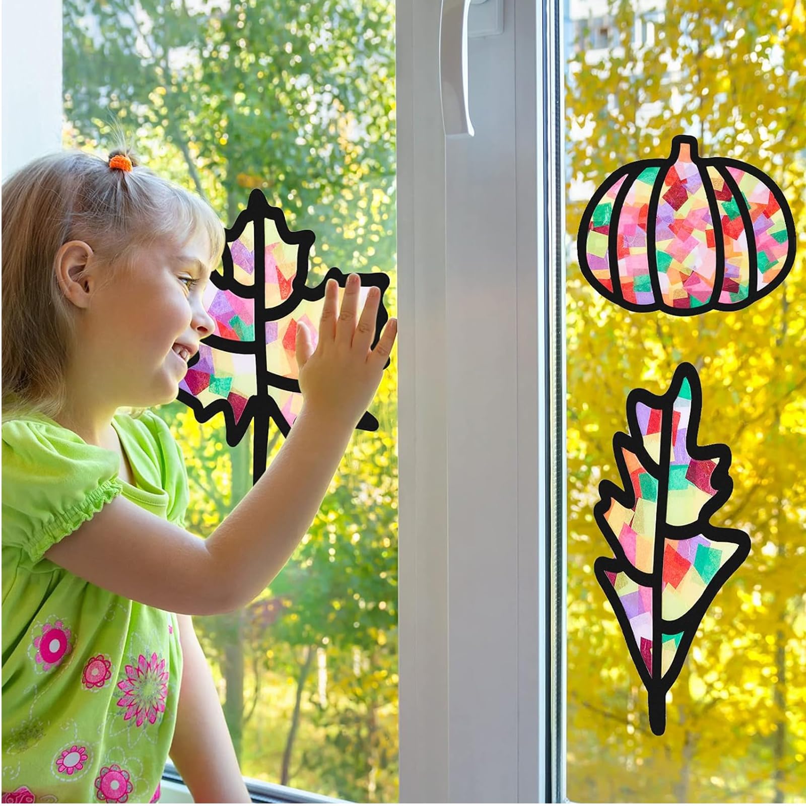 Herbst Bastelset Kinder 12-tlg. - Mit Ahornblättern, Tieren & Pilzen Für Fensterdekoration