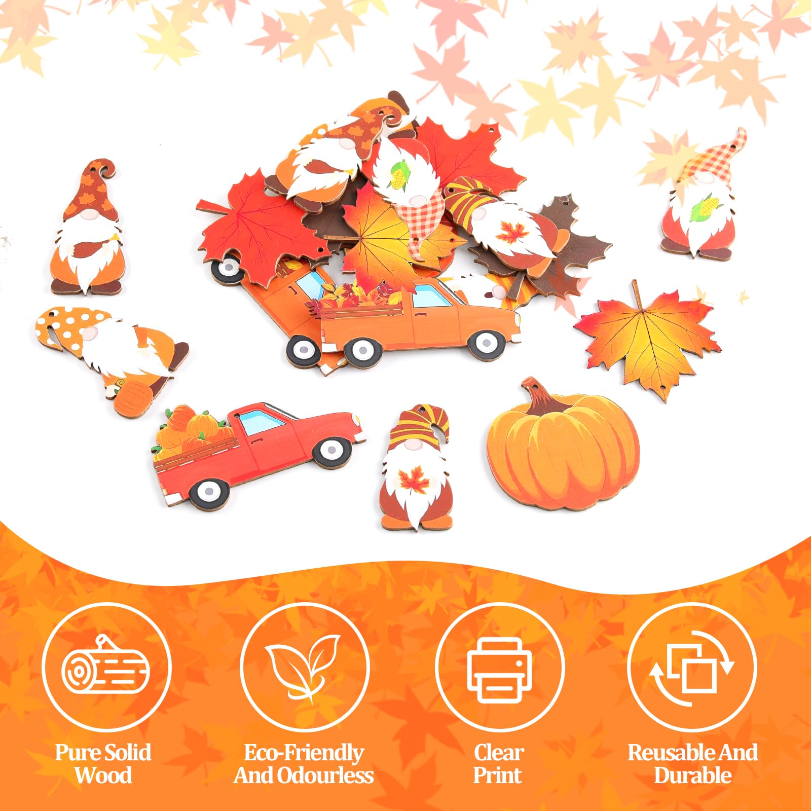 24-teiliges Herbst Deko Set - Holz Hänger Mit Kürbissen, Gnomen & Ahornblättern Für Fenster