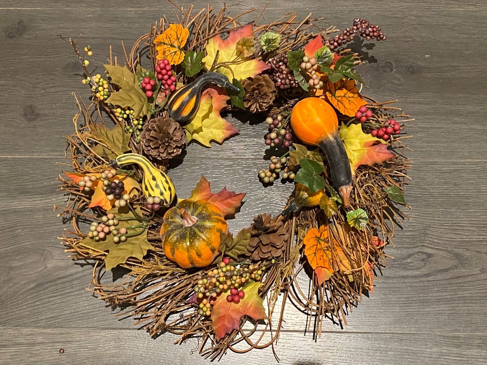 Herbst Türkranz Mit Kürbis Deko - Künstlicher Herbstkranz Für Innen & Außen 45cm