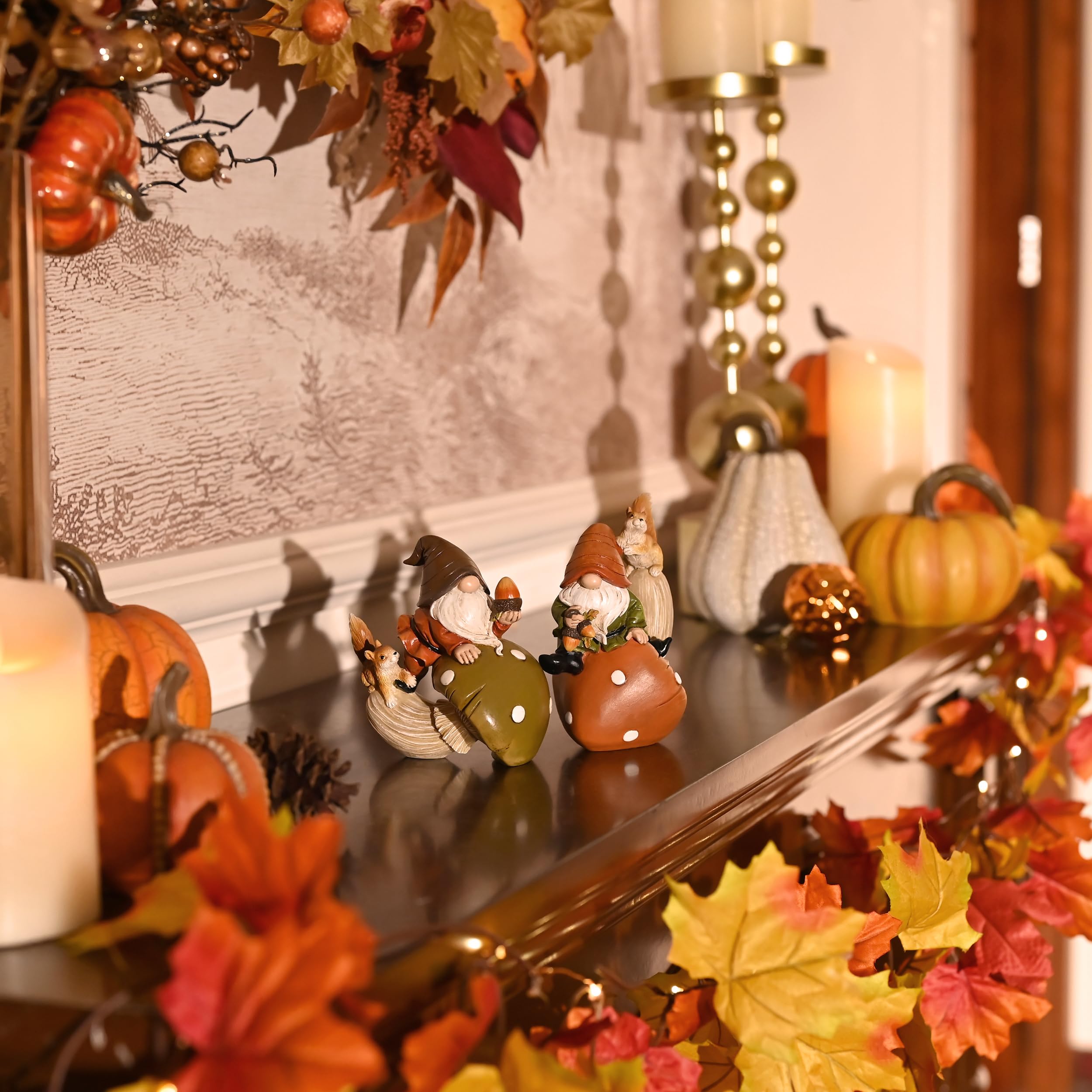 Valery Madelyn Herbstdeko Figuren - 10cm Zwerge Aus Kunstharz Für Herbst-Deko Innen & Draußen