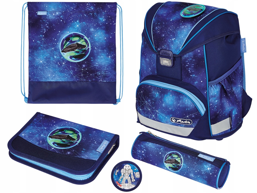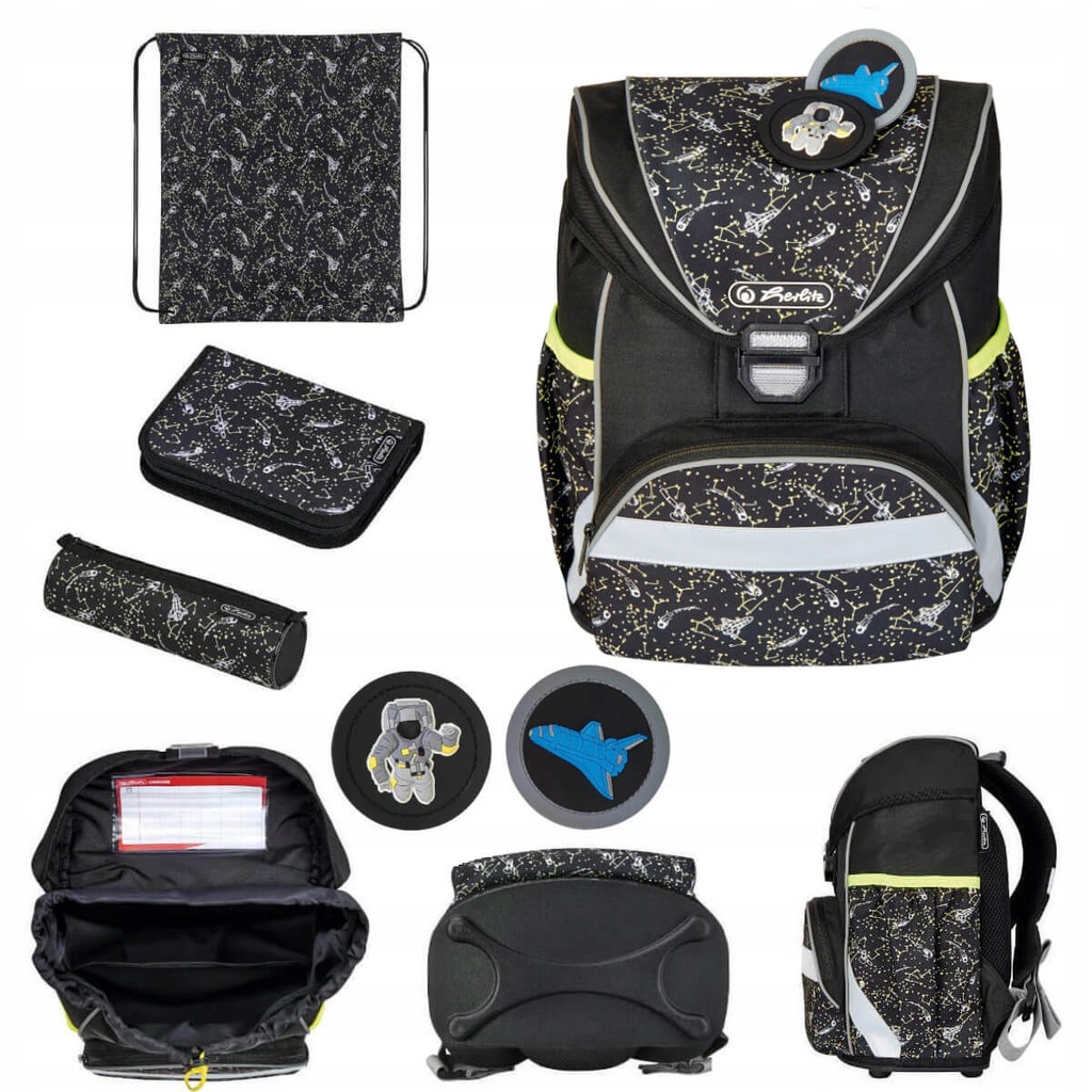Der perfekte Begleiter für die Schulzeit! Der Herlitz UltraLight Plus Space wiegt unter 750g und ist damit superleicht für kleine Kinderrücken. Mit 36x28x21cm Maßen und ca. 15 Liter Volumen bietet er genug Platz für alle Schulsachen. Im Set enthalten: Schulranzen, gefülltes Schüleretui mit 16 Teilen, Faulenzer rund, Sportbeutel und 2 austauschbare Applikationen. Das atmungsaktive Rückenpolster sorgt für optimalen Tragekomfort, verstellbare Schultergurte und höhenverstellbarer Brustgurt passen sich perfekt an. Mit viel Reflexmaterial für Sicherheit auf dem Schulweg - an Front, Seiten und Schultergurten. Mehrere Fächer für optimale Organisation. Ein tolles Starter-Set für ABC-Schützen!