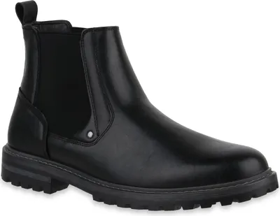 Stylish durch Herbst und Winter! Diese VAN HILL Chelsea Boots kombinieren modisches Design mit praktischem Komfort. Mit 3,5 cm Blockabsatz geben sie dir extra Höhe, ohne unbequem zu sein. Die Boots sind innen mit weichem Kunstfell gefüttert - perfekt für kalte Tage! Aus hochwertigem Kunstleder und Textil, sehen sie aus wie echt, sind aber pflegeleichter. Die Schafthöhe von 12 cm schützt deine Knöchel, die runde Schuhspitze gibt deinen Zehen Platz. In Größe 42 hat der Schuh eine Innensohle von 28,5 cm. Einfach reinschlüpfen - kein lästiges Schnüren! Ob zum Jeans, zur Chino oder zum Anzug - diese Boots passen zu fast allem. Perfekt für den Alltag, Büro oder abends in der Stadt. Mach deinen Look komplett mit diesen zeitlosen Chelsea Boots, die Saison für Saison treue Begleiter sind.
