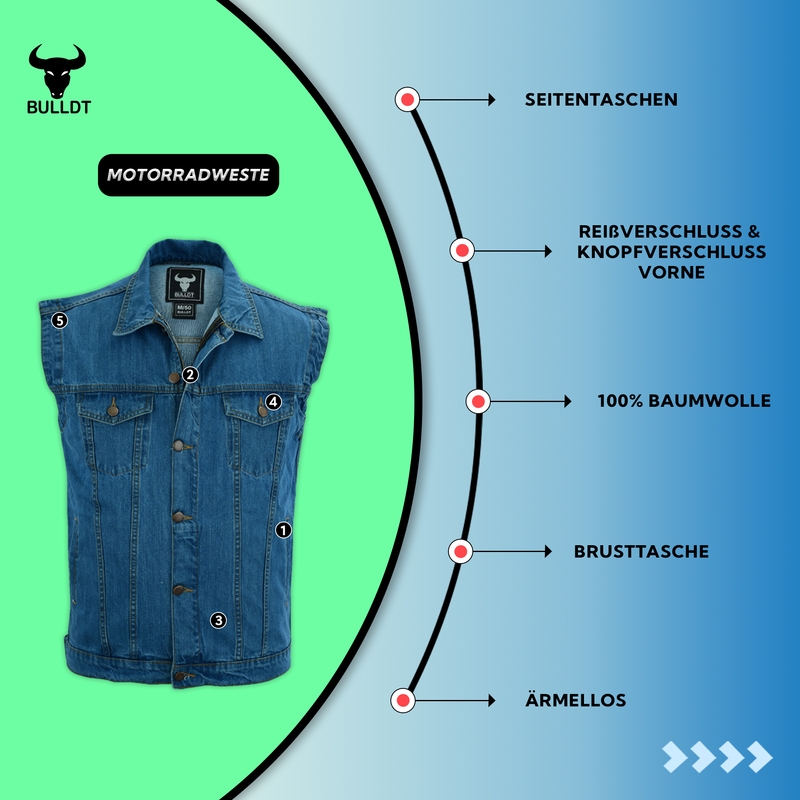 H15 Herren Denim Kutte Midblue - Bikerkutte Bis 5XL Mit Taschen