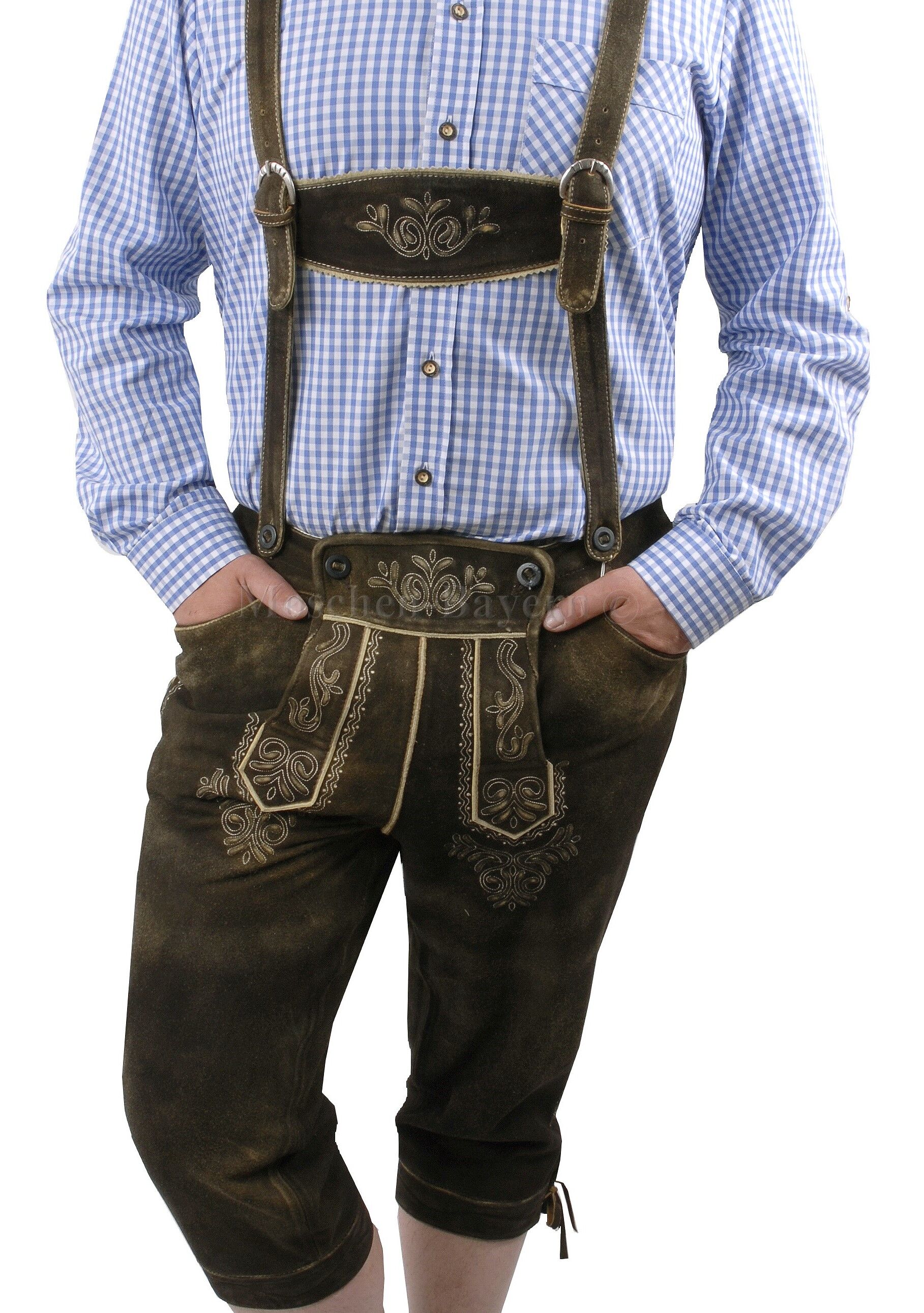 Servus! Diese Tatla Lederhose ist ja mal richtig authentisch! Aus hochwertigem Wildleder in Braun mit kunstvollen Stickereien am Latz und den Taschen. Die klassischen Hosenträger mit Metallschnallen sind verstellbar für perfekten Sitz. Als Kniebundhose mit seitlicher Schnürung lässt sie sich optimal anpassen. In Größen von 46 bis 62 erhältlich - da findet jeder was Passendes. Perfekt für Oktoberfest, Volksfeste oder einfach als stylische Tracht. Das robuste Leder entwickelt mit der Zeit eine schöne Patina. Einfach anziehen und du bist bereit fürs Wiesn-Vergnügen! Traditionell, bequem und einfach nur cool!