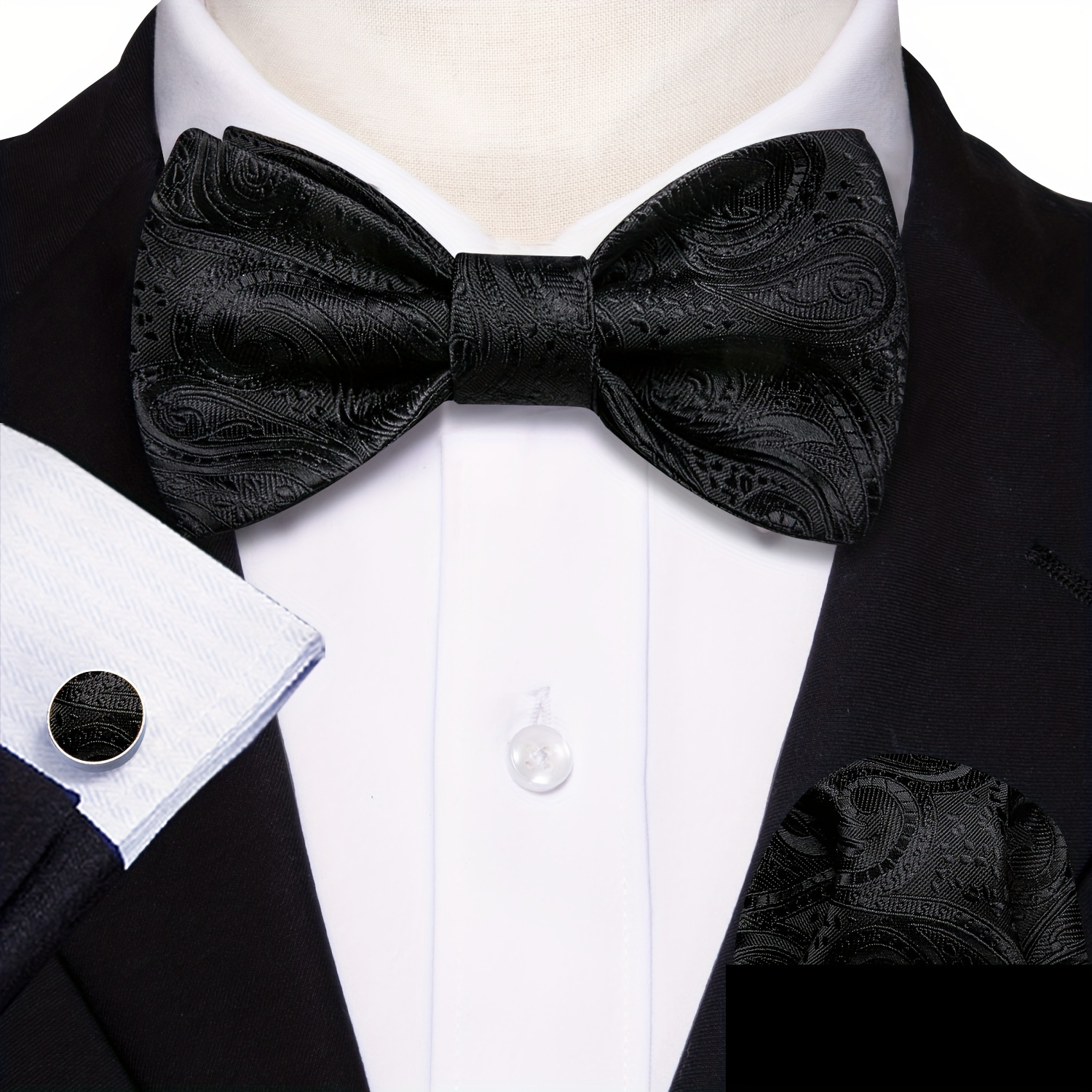Perfekt gekleidet für besondere Anlässe! Dieses Set enthält eine vorgebundene Fliege (10x5 cm) und passendes Einstecktuch (20x20 cm) aus hochwertiger Seide. Handgenäht mit exquisiten Jacquard-Mustern - sieht aus wie selbstgebunden, aber ohne Aufwand. Verstellbares Halsband passt sich jeder Größe an - für Jungen ab 8 Jahren und Erwachsene. Weich, atmungsaktiv und farbecht - auch nach dem Waschen wie neu. Ideal für Hochzeiten, Abschlussfeiern, formelle Partys oder als stylisches Geschenk. In verschiedenen Designs erhältlich - von klassisch bis modern. Einfach umlegen, einstecken und du bist der Gentleman des Abends! Mach jedem Anlass die richtige Note - elegant und unkompliziert. Perfect für alle, die stylisch aber praktisch unterwegs sein wollen!