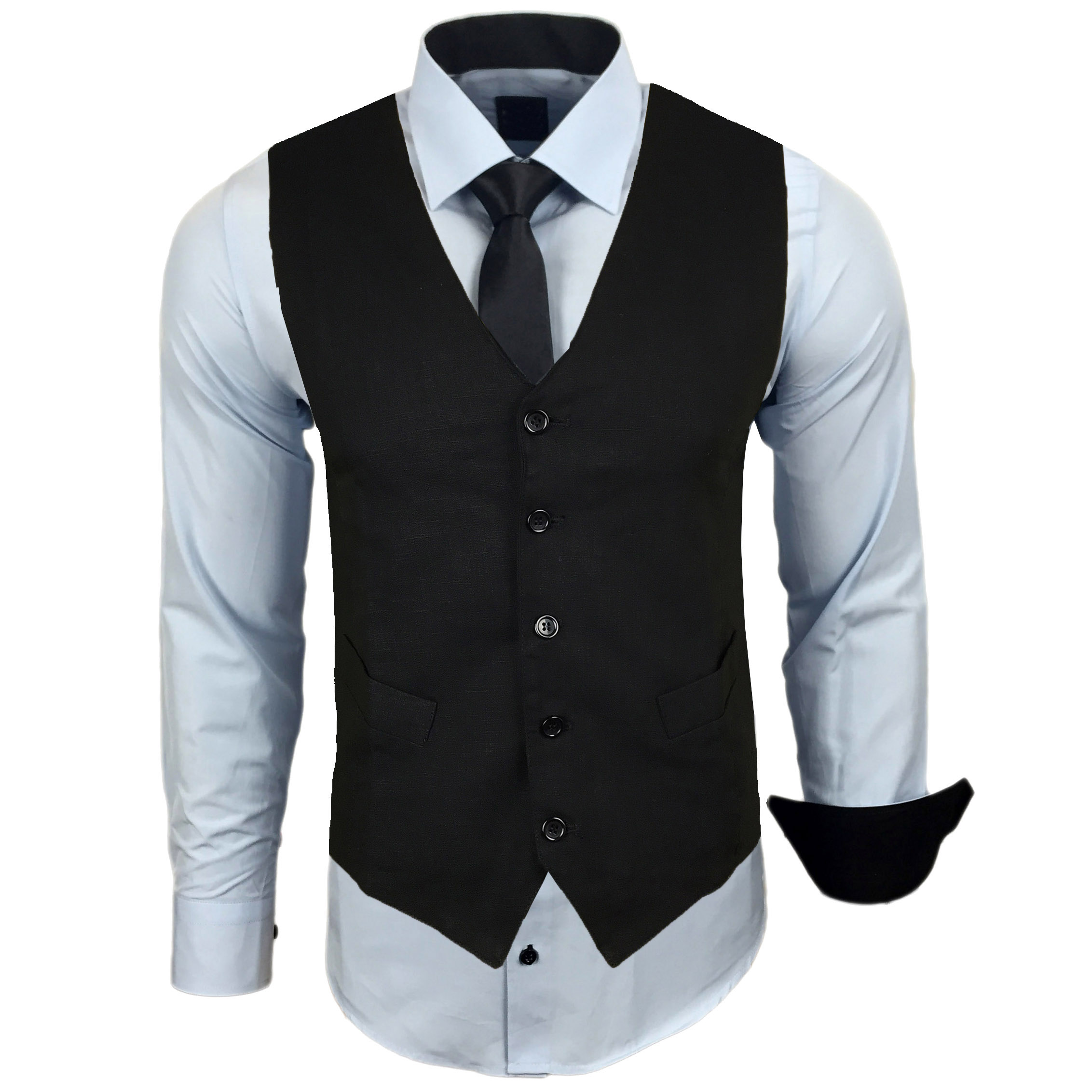 R-Neal Herren Hemd Set - Slim Fit Mit Weste & Krawatte