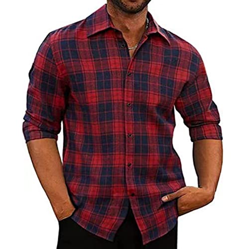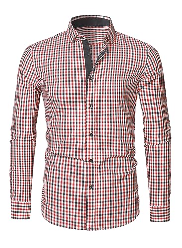 Halfword Kariertes Hemd Herren - Langarm Trachtenhemd Baumwolle Für Freizeit
