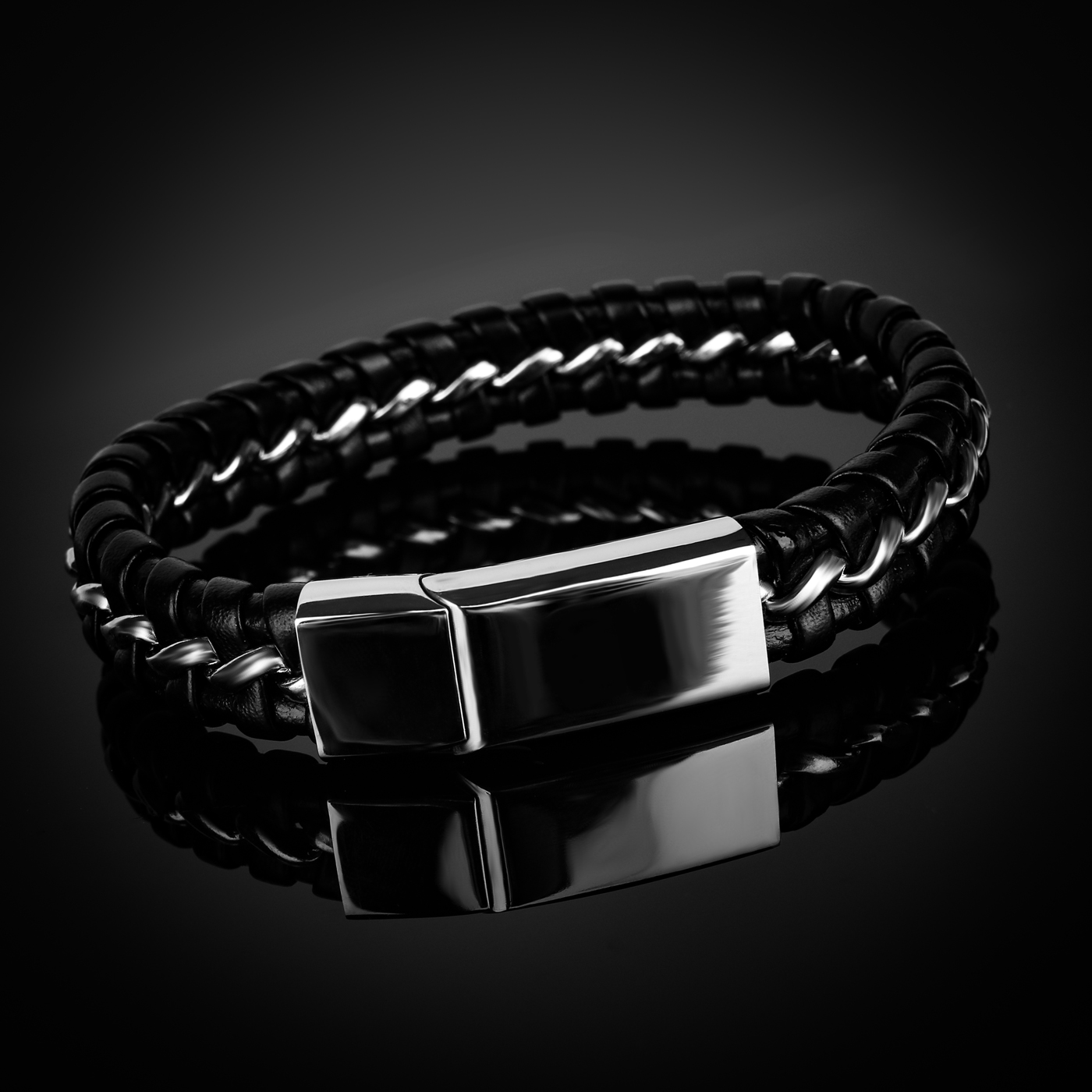 NAJILI Lederarmband Herren Mit Magnetverschluss - Geflochtenes Edelstahl Armband Schwarz, 21cm