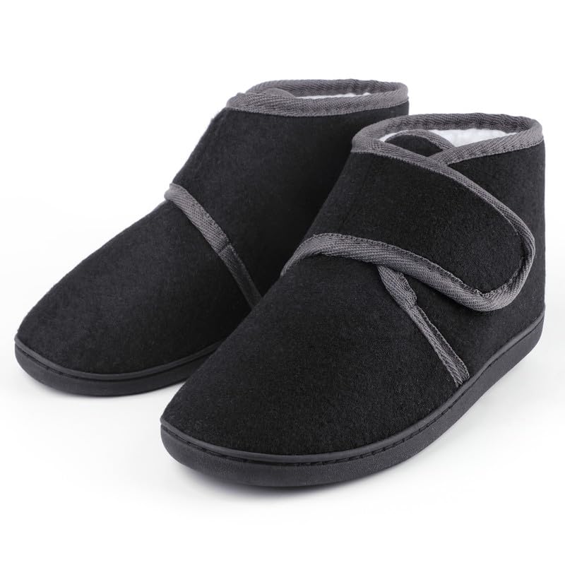 Wow, diese TIESTRA Hausschuhe sind ja der absolute Komfort! Mit Memory Foam Sohle, die sich deinem Fuß perfekt anpasst - wie auf Wolken laufen! Besonders geeignet für Diabetiker und breite Füße, dank verstellbarem Klettverschluss. Die weiche Beflockung innen hält schön warm, ist aber trotzdem atmungsaktiv - auch im Frühling und Sommer angenehm zu tragen. Die rutschfeste TPR-Sohle gibt sicheren Halt, auch mal kurz draußen. In Braun Gestreift, Schwarz oder Grau erhältlich, Größen 41-47. Und das Beste: Sie sind maschinenwaschbar! Einfach bei 30°C waschen und lufttrocknen. Perfekt als Geschenk für Papa, Opa oder dich selbst - zu Weihnachten, Geburtstag oder einfach so. Einfach anziehen und wohlfühlen!