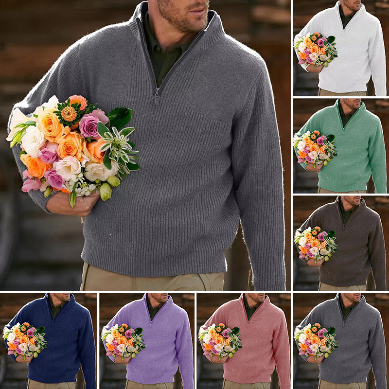 Herren Pullover Mit Reißverschluss - Übergroßer Stehkragen Pullover Ohne Kapuze Aus Polyester