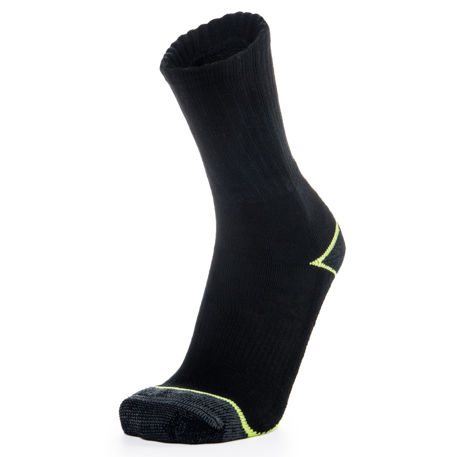 Kennst du das? Nach einem langen Arbeitstag oder intensivem Sport brennen dir die Füße? Mit unseren Aurellie Arbeitssocken gehört das der Vergangenheit an! Die robusten Socken sind speziell für anspruchsvolle Tage entwickelt worden. Hergestellt aus einer hochwertigen Baumwollmischung, die sich weich anfühlt und trotzdem extrem langlebig ist. Besonders praktisch: Ferse und Zehen sind extra verstärkt - da machst du so schnell kein Loch rein! Der elastische Bund sitzt perfekt und rutscht nicht, egal ob du auf der Baustelle, im Fitnessstudio oder einfach nur unterwegs bist. Erhältlich in den Größen 39/42 und 43/46 in schwarz-grau mit coolen gelben Akzenten. Suchst du die perfekten Allround-Socken? Hier bist du richtig! Ob im 3er-Pack für den ersten Test oder im 20er-Pack für den kompletten Socken-Vorrat - deine Füße werden's dir danken. Perfekt für Handwerker, Sportler und alle, die Wert auf Komfort und Qualität legen. Diese Socken halten, was sie versprechen: Ganztägiger Tragekomfort, auch wenn's mal anstrengend wird!