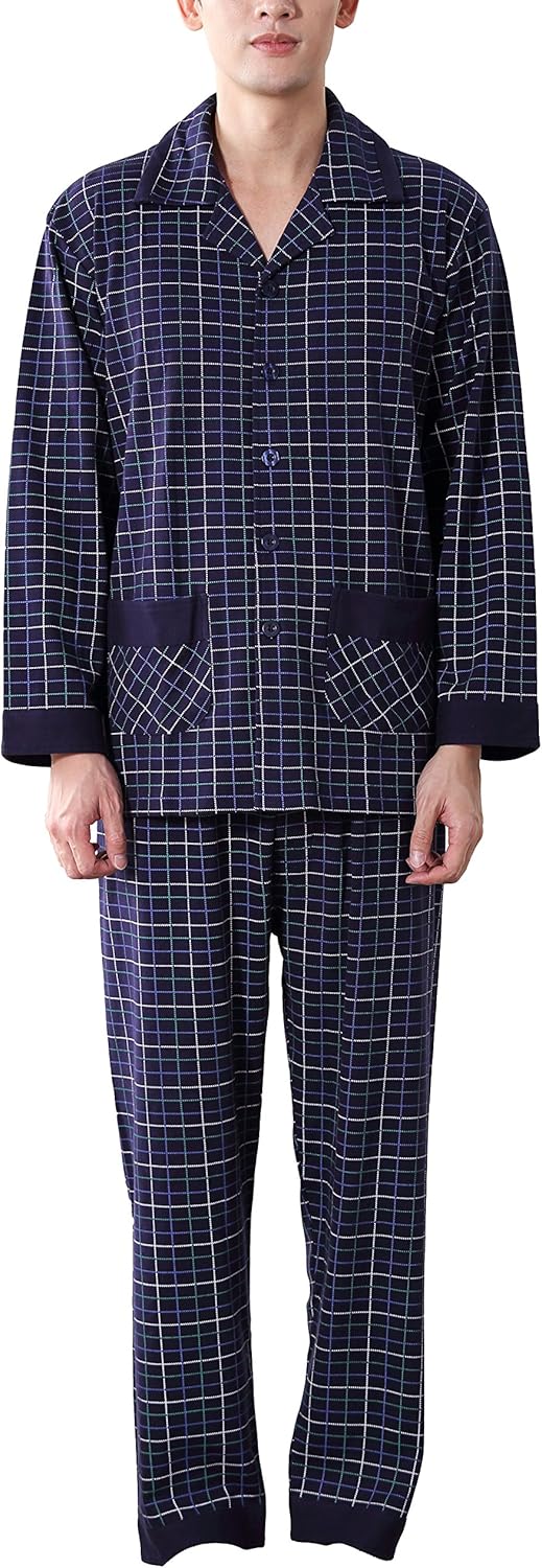 Aseniza Herren Schlafanzug Lang - Baumwolle Pyjama Set Mit Knopfleiste