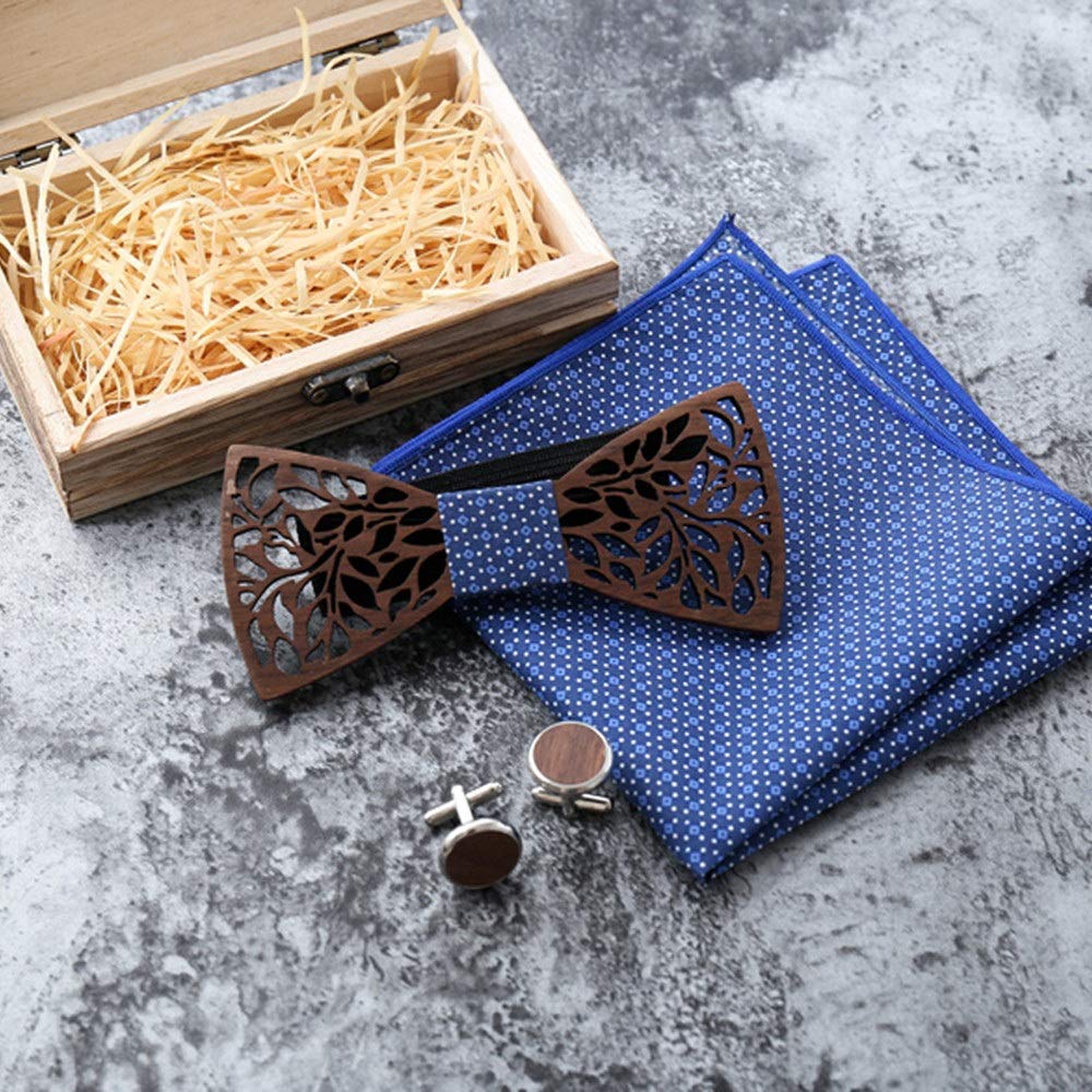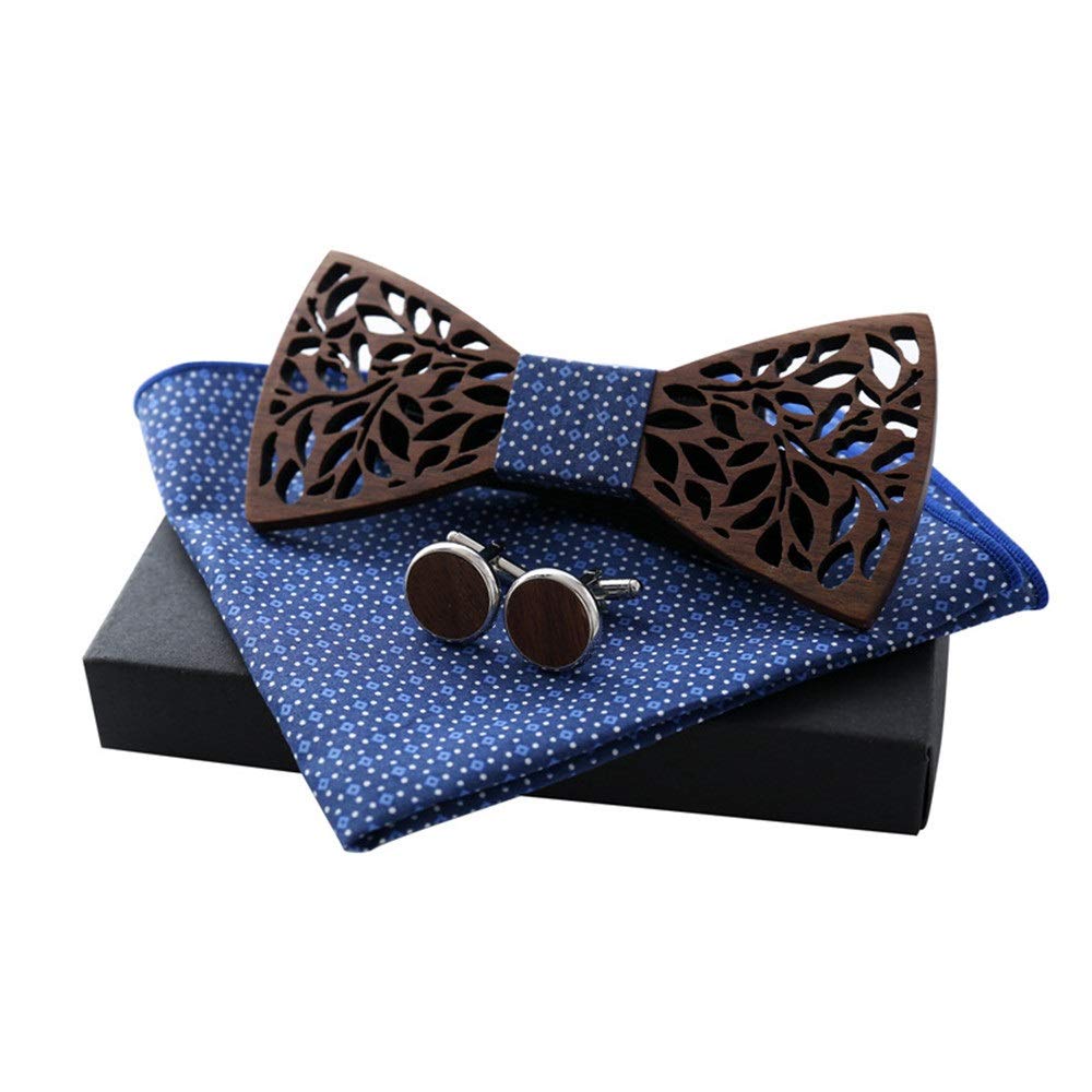 Hauojaus Holzfliege Herren Set - Mit Manschettenknöpfe & Einstecktuch