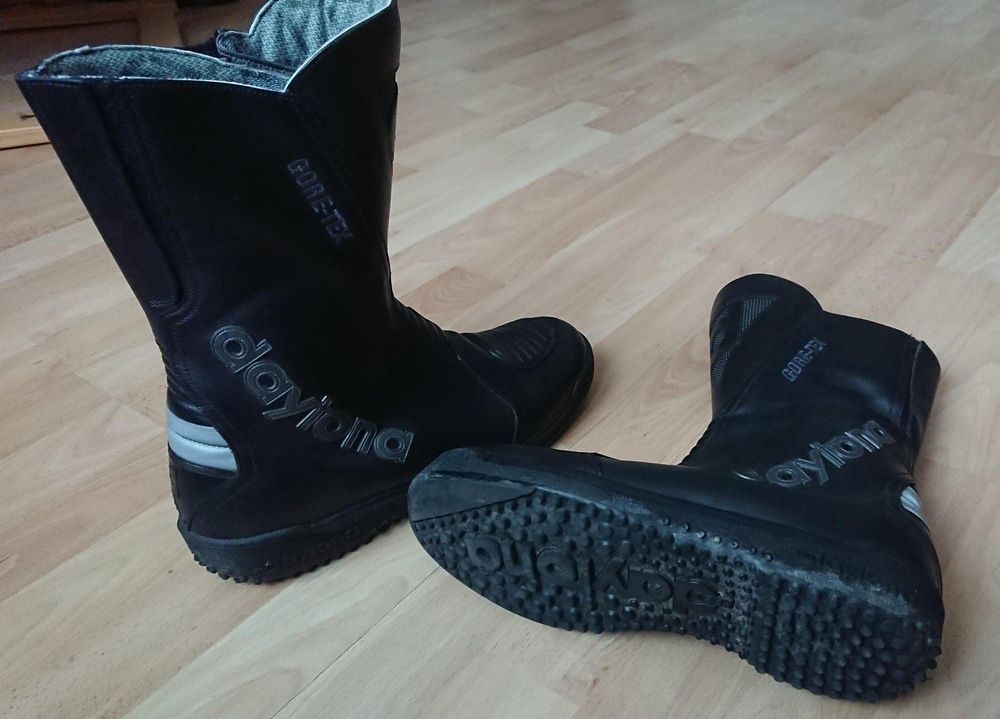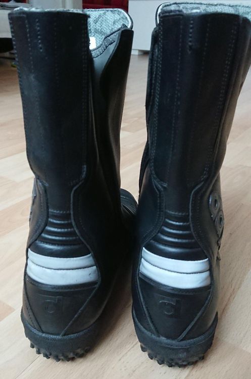 Hey Leute, passt auf: Diese Motorradschuhe fallen etwas kleiner aus als normale Straßenschuhe! Wenn du breitere Füße hast, nimm lieber eine Nummer größer. Aber was bringen die? Richtig viel Schutz! Die Schaltstelle ist extra verstärkt, damit nichts durchscheuert. Seitlich gibt's eine Knöchelplatte gegen Stöße und die Ferse ist mit dicker PVC-Kappe gepanzert. Die Gummisohle hat ein tiefes Profil - hält auch auf nassen Straßen bombenfest. Praktisch: Reißverschluss an beiden Seiten, kein lästiges Schnüren! Memory-Schaum polstert den Knöchel und die Einlegesohle federt jeden Tritt ab. Nachts siehst du damit übrigens auch besser - Reflektorstreifen rundum machen dich sichtbarer. Perfekt für die tägliche Fahrt oder lange Touren!