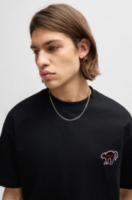 Style, der auffällt! Dieses HUGO T-Shirt in Oversize-Passform sitzt einfach perfekt. Aus weichem Baumwoll-Jersey, mit coolem Orangen-Print. Der Rundhalsausschnitt und die kurzen Ärmel machen es zum idealen Basic - aber mit dem gewissen Etwas! HUGO steht für individuellen Style mit progressiver Attitude. Ob zu Jeans, Chino oder Shorts - dieses Shirt passt immer. Zeig, dass du es drauf hast - nicht nur in Sachen Mode, sondern auch in Sachen Selbstbewusstsein! Qualität, die man spürt - von der Marke, die man sieht.