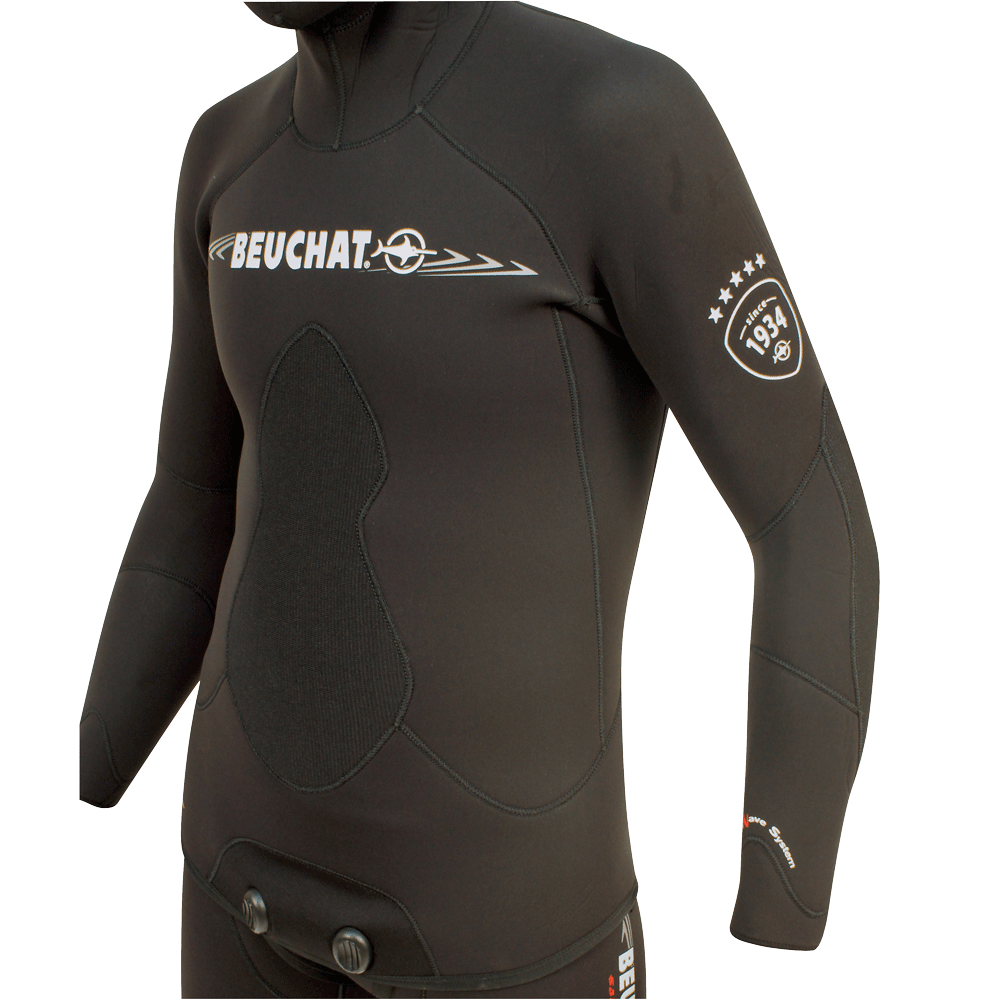 Für alle begeisterten Taucher und Unterwasserjäger! Dieser hochwertige Beuchat Espadon Overall aus weichem Neopren mit schwarzem Jersey-Innenfutter bietet optimalen Wärmeschutz. Erhältlich in 3, 5 oder 7 mm Stärke - je nach deinen Bedürfnissen. Der anatomisch vorgeformte Schnitt sitzt perfekt am Körper und die Jacke besteht aus 21 speziell zugeschnittenen Neopren-Teilen für maximale Bewegungsfreiheit. Besonders clever: Nahtlose Komfort-Panels an den Gelenken (Achseln, Armbeugen, Kniekehlen) verhindern unangenehme Reibung. Die Verstärkung auf der Brust imitiert natürliche Fischkratzer - sieht nicht nur cool aus, sondern ist auch praktisch! Die Jacke ist innen geschlitzt für noch besseren Wärmeschutz. Einfach ein Top-Produkt von Beuchat für anspruchsvolle Taucher!
