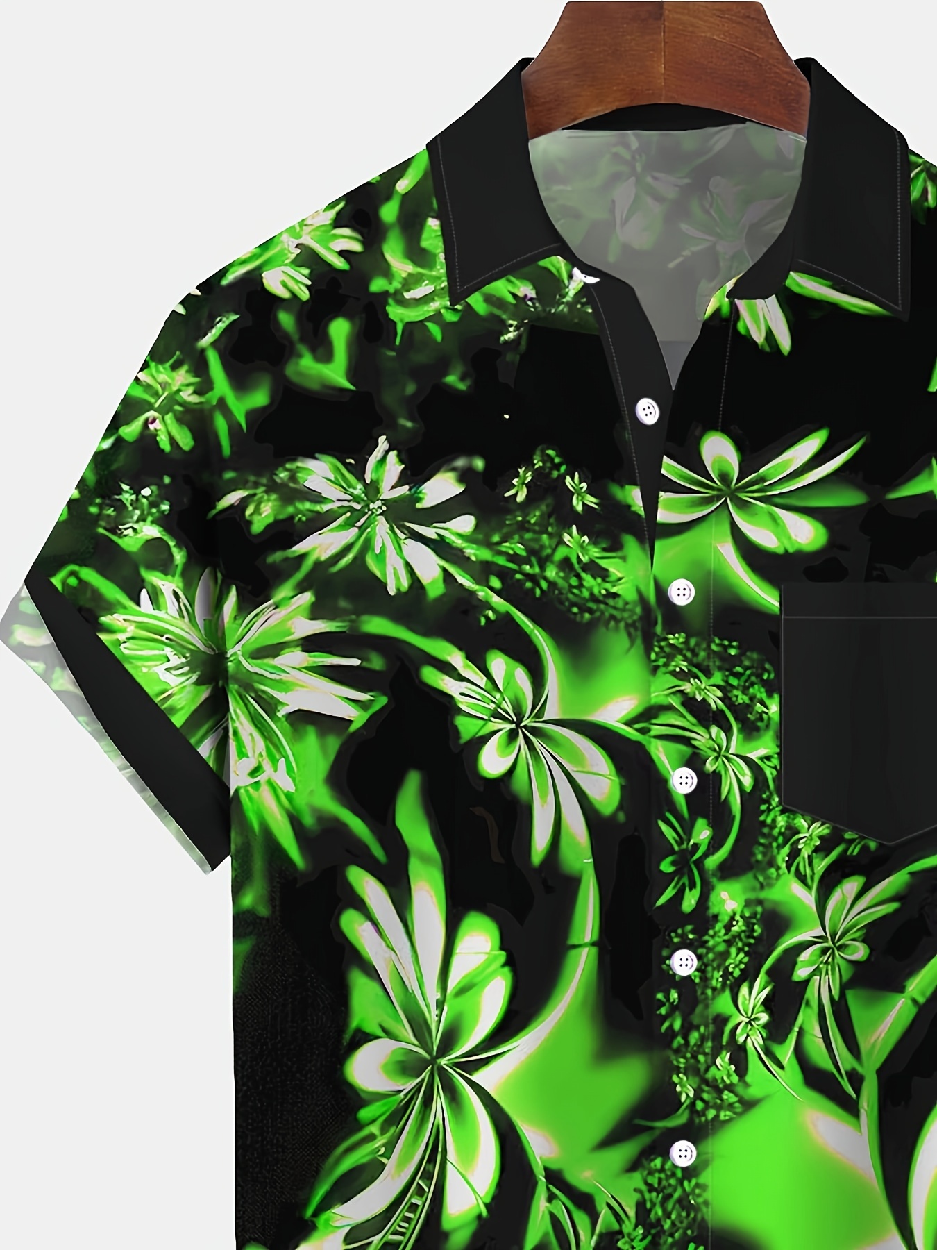 Aloha! Dieses coole Hawaii-T-Shirt bringt Urlaubsfeeling in euren Kleiderschrank! Mit dem typischen tropischen Blumenmuster in leuchtenden Farben seid ihr der Hingucker auf jeder Party, am Strand oder im Urlaub. Aus superweichem Polyester-Spandex-Gewebe gefertigt - angenehm zu tragen und super dehnbar. Mit Knopfleiste, kurzen Ärmeln, Revers und praktischer Brusttasche - alles was ein richtiges Hawaii-Hemd braucht! Die lockere Passform sitzt bequem und lässt euch frei bewegen. Perfekt für Sommerfeste, Strandpartys, Hochzeiten oder einfach für den lässigen Alltag. Ob mit Shorts oder Jeans - dieses Shirt passt immer! Macht aus jedem Tag einen Urlaubstag und zeigt euren lässigen Style. In verschiedenen Größen erhältlich - findet eure perfekte Passform! Einfach anziehen und die Sonne genießen!