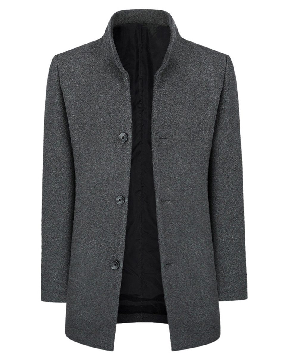 Herren Wollmantel Mit Stehkragen - Tweed Übergangsmantel Mittellang, Slim Fit Für Business & Urban Style