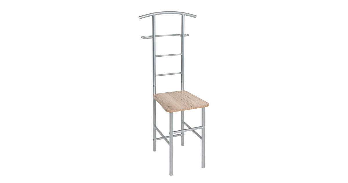 Stylische Ordnung für dein Schlafzimmer! Dieses 2er-Set Herrendiener Stühle kombiniert modernen Industrial-Look mit praktischer Funktionalität. Der Metallrahmen in Silber und Holzwerkstoff-Sitz in Hellbraun sehen einfach klasse aus. Mit 52x40x120 cm perfekt für kleine Räume. Die 22 mm starken Stuhlbeine tragen bis 150 kg - super stabil! Ideal zur Kleideraufbewahrung oder als Sitzgelegenheit. Einfach montieren, rutschfeste Füße schützen deinen Boden. Passt perfekt in moderne Loft- oder Industrial-Einrichtungen. Mach dein Schlafzimmer zum stylischen Wohlfühlbereich mit diesen praktischen Stühlen!