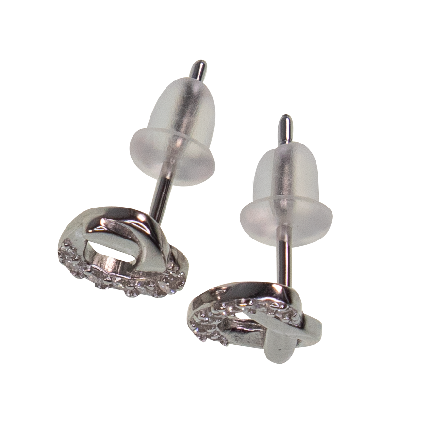 Sterling Silber Ohrstecker - Brezel, Herz, CZ Steine, 2-tönig