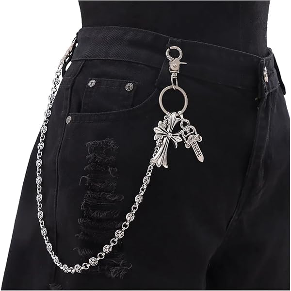 Diese coole Punk-Hosenkette gibt deinen Outfits sofort nen rebellischen Touch! Mit Herz-, Kreuz- und Nieten-Quasten sieht sie mega edgy aus und ist ein echter Hingucker. Die mehrlagige Kette lässt sich in der Länge anpassen - perfekt für deinen persönlichen Style. Einfach an Jeans, Hosen oder Shorts befestigen und schon sieht alles anders aus. Für Männer und Frauen geeignet - egal ob Hip Hop Fan oder Goth Liebhaber. Aber Achtung: Nicht lange im Wasser lassen und vor dem Sport abnehmen. In ner Schmuckschatulle aufbewahren, damit sie lange schön bleibt. Einfach dran machen und auffallen - damit wirst du sicher Komplimente kriegen!