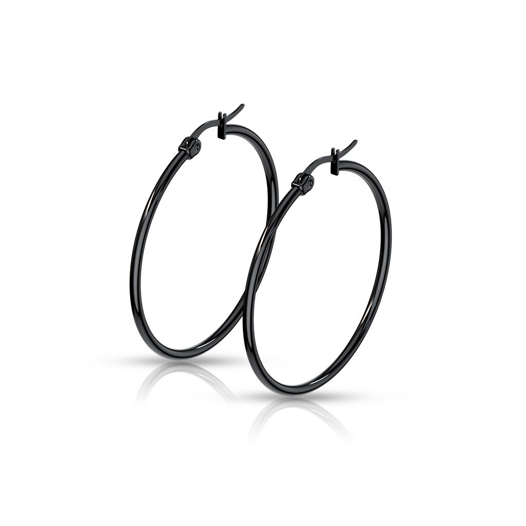 Bungsa Damen-Creolen Mit Herzanhänger - 316L Edelstahl Schwarz, Hypoallergen