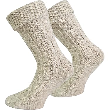 Oktoberfest, here we come! Diese authentischen Trachten-Socken von Hestya machen dein Wiesn-Outfit perfekt. Im Set bekommst du 4 Paar - 2x cremeweiß und 2x hellbraun, dazu 8 coole Edelweiß-Anstecker! Aus weicher Baumwolle gefertigt, sind sie super atmungsaktiv und bequem. Die Einheitsgröße (ca. 21x24cm) passt den meisten Damen und Herren und dehnt sich super an. Ob beim Wiesn-Besuch, auf Volksfesten, Mottopartys oder traditionellen Hochzeiten - mit diesen Socken bist du immer stylisch unterwegs. Sie geben deinem Dirndl oder deiner Lederhose den letzten Schliff und sorgen für echte Bayern-Atmosphäre! Einfach anziehen und den Komfort genießen - so macht feiern noch mehr Spaß!