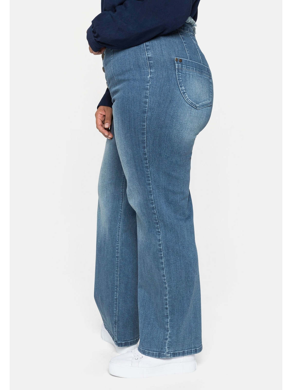 Total bequem und mega im Trend! Diese Mom Jeans mit hoher Taille und weitem, geradem Bein sorgt für einen lässigen Look mit maximalem Komfort. Der Stretch-Denim passt sich jeder Bewegung an, ohne einzuengen. Die hochgeschnittene Taille betont die Figur und streckt optisch die Beine. Perfekt kombinierbar mit Crop-Tops, T-Shirts oder Blusen - ob zu Sneakern oder Stiefeln. In verschiedenen Größen erhältlich, für einen lockeren, urbanen Streetstyle. Ideal für Alltag, Freizeit oder Büro. Sie fühlt sich an wie eine Jogginghose, sieht aber aus wie eine stylische Jeans!