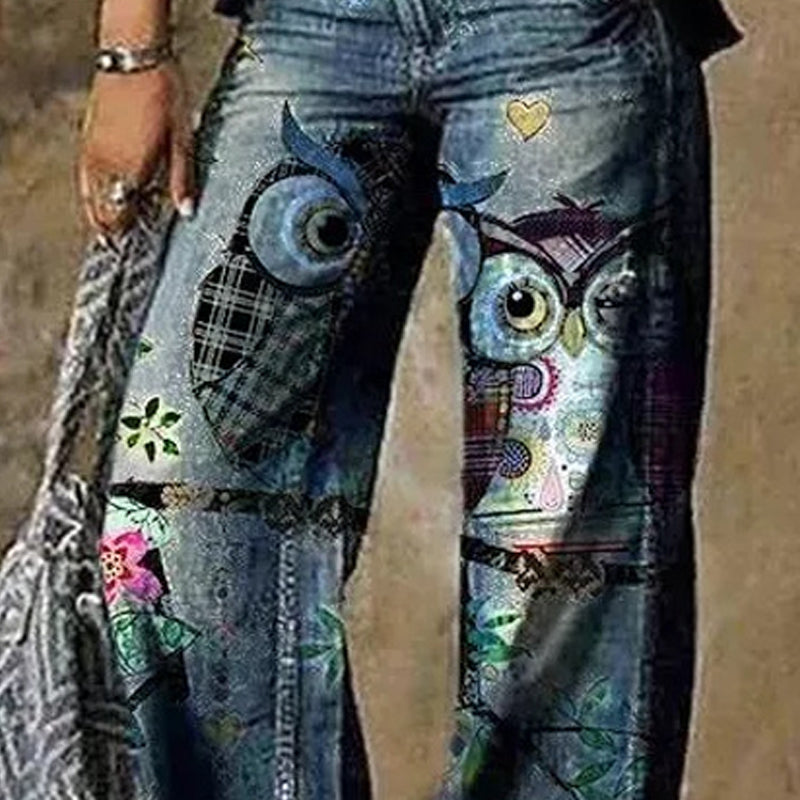 Edelaura Damen Jeanshose High Waist - Weite Beine Mit Farbblock Print Gothic Streetwear