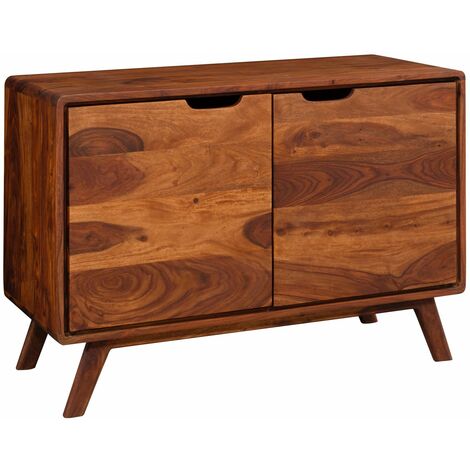 Echtes Sheesham-Holz in Perfektion! Dieses Highboard aus der Malmö Serie bringt indischen Palisander in dein Zuhause. Mit 90x40x110 cm Maßen ist es der perfekte Stauraum für Wohnzimmer oder Flur! \\n\\nJedes Stück ein Unikat: Die markante Maserung des Sheesham-Holzes macht jedes Möbelstück einzigartig. In dunkler Walnuss-Lackierung betont es den coolen Sixties-Style! \\n\\nMinimalistisches Design mit gefrästen Griffen in den Fronten, nach außen zeigenden Füßen und abgerundeten Ecken - einfach zeitlos schön! Perfekt kombinierbar mit anderen Möbeln der MALMÖ 2 Serie. \\n\\nMassivholz-Qualität die bleibt: Langlebig, robust, natürlich und nachhaltig. Ein Möbelstück fürs Leben! Einfach mit trockenem oder leicht feuchtem Tuch reinigen - mehr Pflege braucht's nicht! Bringt Wärme und Charakter in deine vier Wände - pure Natur pur!