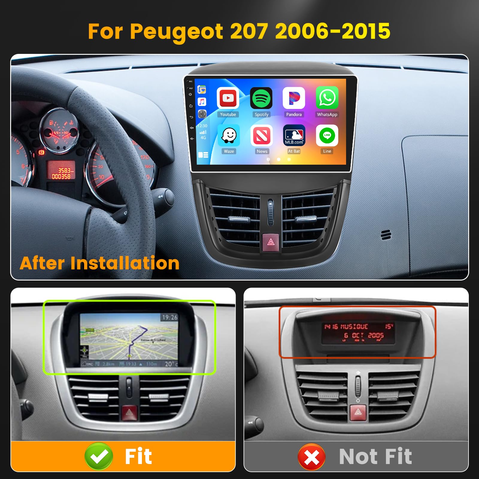 Hikity Android Autoradio Für Peugeot 207 - 9 Zoll Touchscreen Mit Wireless CarPlay & Android Auto