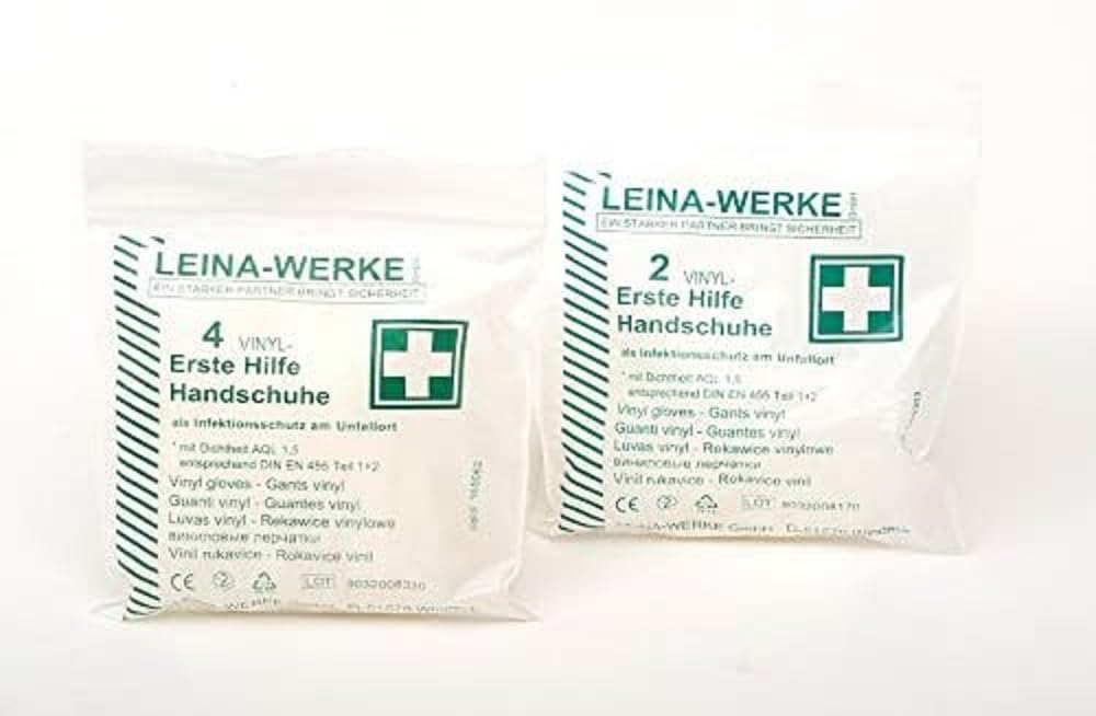 Brauchst du zuverlässige Handschuhe für deine Erste-Hilfe-Ausrüstung? Diese Vinyl-Handschuhe von LEINA-WERKE sind perfekt! In der Packung sind 100 Stück - Größe M. Erfüllen die DIN EN 455 Norm und bieten mit AQL 1,5 ausreichend Schutz. Super als Infektionsschutz bei Unfällen oder für unterwegs im Auto. Die Dichtheit stimmt einfach - da musst du dir keine Sorgen machen. LEINA-WERKE ist bekannt für gute Qualität - die haben jahrelange Erfahrung mit Verbandkästen. Einfach ein Paar griffbereit haben für den Notfall. Ob im Auto, zu Hause oder im Betrieb - mit diesen Handschuhen bist du auf der sicheren Seite. Einfach mal ordern und vorbereitet sein!