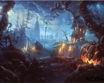 Avezano Halloween Hintergrund 2,1x1,5m - Horror Wald Fotohintergrund