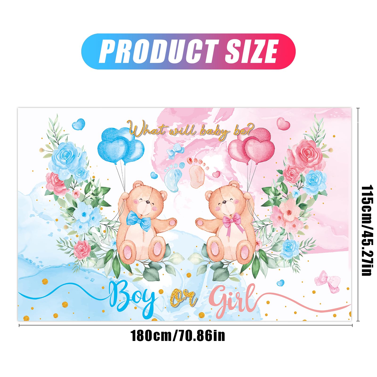 Gender Reveal Hintergrund - Rosa & Blau Mit Ballons & Bären 180x110cm