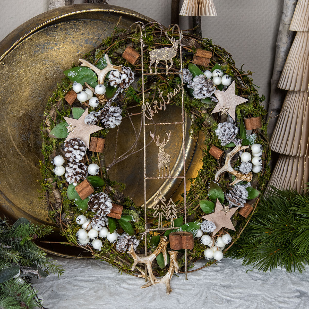 Logbuch-Verlag Weihnachtsdeko Hirsch - Holz Türkranz Anhänger 16 Cm Im Landhaus Stil