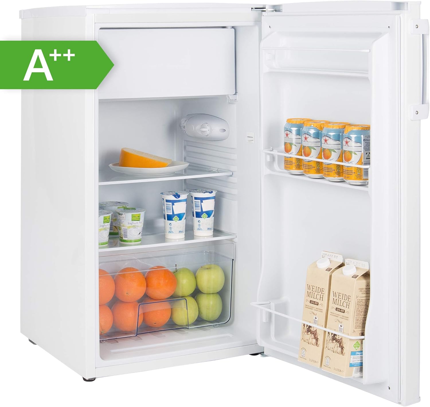 Dieser Hisense Retro-Kühlschrank ist einfach klasse für kleinere Haushalte oder als Zweitgerät! Mit 165 Litern Fassungsvermögen (150L Kühlbereich + 15L Gefrierfach) bietet er Platz für etwa 8 Einkaufstaschen voller Lebensmittel. Das 4-Sterne Gefrierfach ist perfekt für Eiswürfel und Tiefkühlkost. Die automatische Abtau-Funktion spart dir lästiges Eiskratzen - super praktisch! Besonders cool: Das integrierte Weinregal für Flaschen und Dosen sowie die spezielle Salatbox für Obst und Gemüse. Mit den Maßen 128x51,9x51,3cm (HxBxT) ist er kompakt und passt auch in kleinere Küchen. In silberner Retro-Optik sieht er einfach stylisch aus! Energieeffizienzklasse E sorgt für niedrige Betriebskosten. Mit 2 Jahren Garantie bist du auf der sicheren Seite. Perfekt für Singles, Paare oder als zusätzlicher Kühlschrank im Partykeller! Einfach anschließen und sofort loslegen - der Kühlschrank ist sofort einsatzbereit!