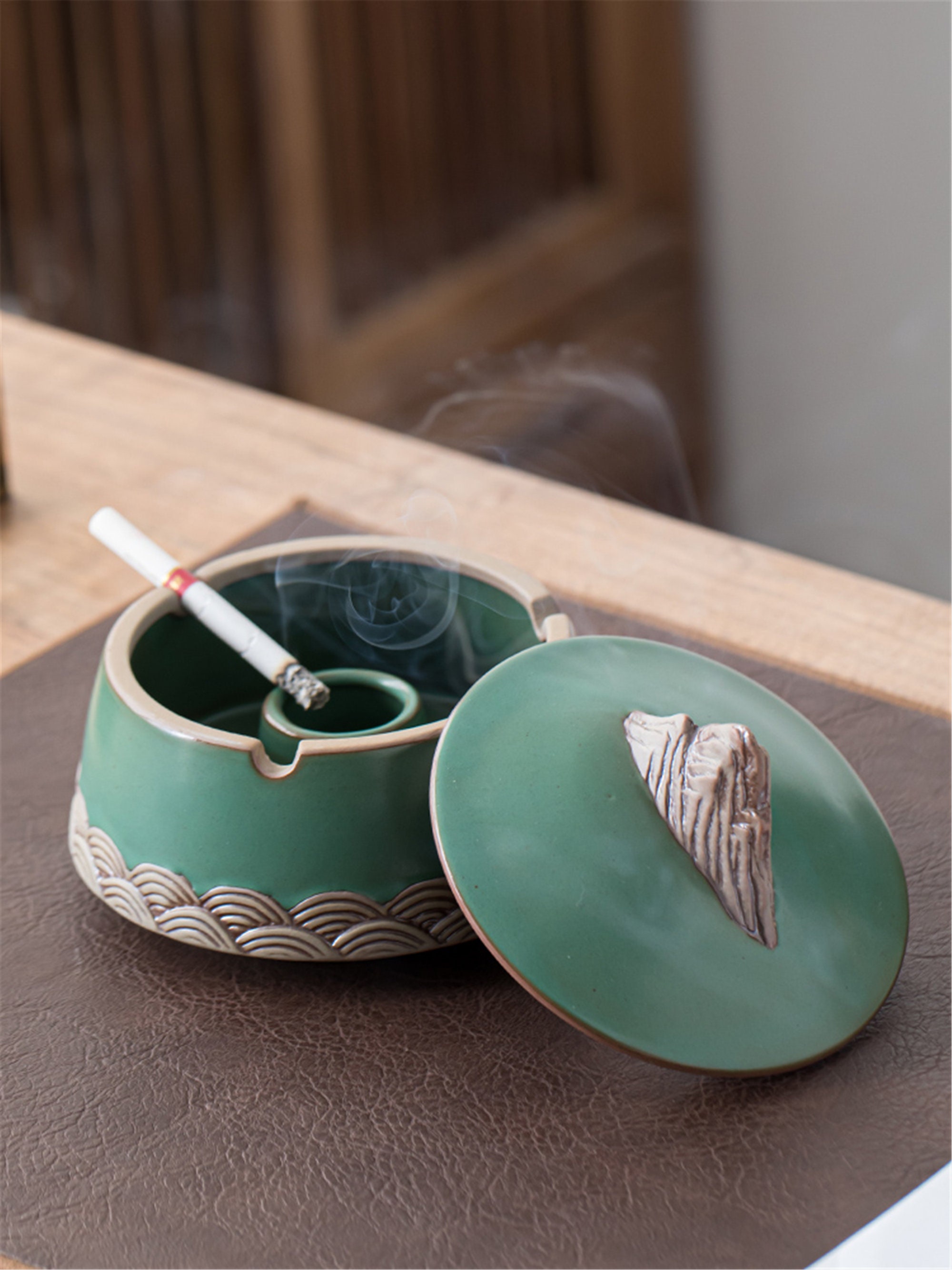 Keramik Aschenbecher Mit Deckel - Winddicht & Hitzebeständig Für Drinnen & Draußen