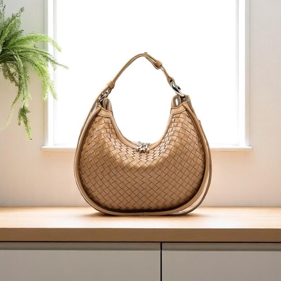 Hobo-Tasche Aus Veganem Leder - Geflochtene Damenhandtasche, 20x10x16cm