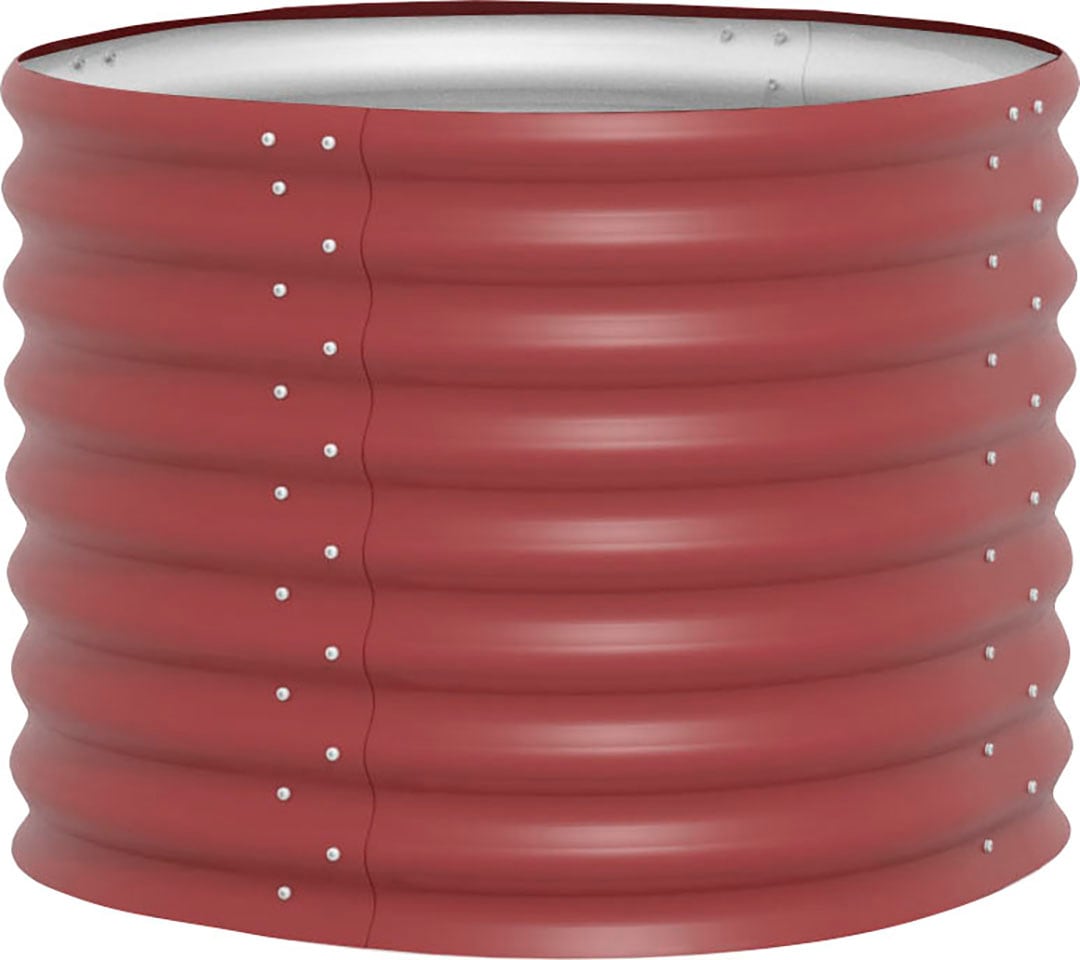 Aus robustem Zincalume-Stahl, der jedem Wetter trotzt. Schnee, Regen, UV-Strahlung - dieses Beet macht einfach mit! Die rubinrote Farbe sieht dabei noch super aus.