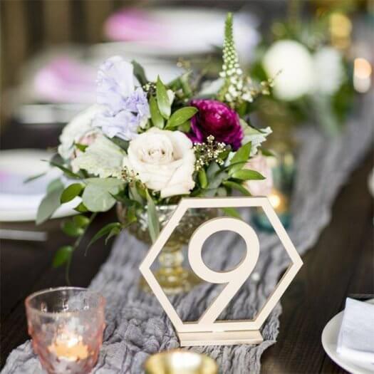 Holz Tischnummern Hochzeit 25 Sets - Sechseckige Tischkarten