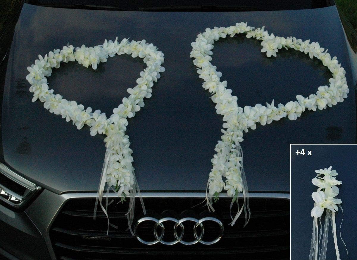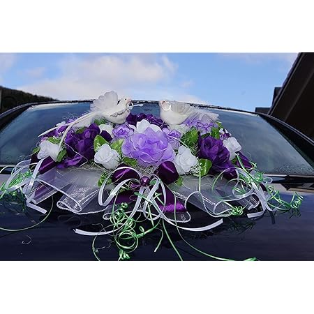 ORCHIDEEN Girlande Auto Deko Hochzeit - Lila/Weiß Brautpaar Autoschmuck