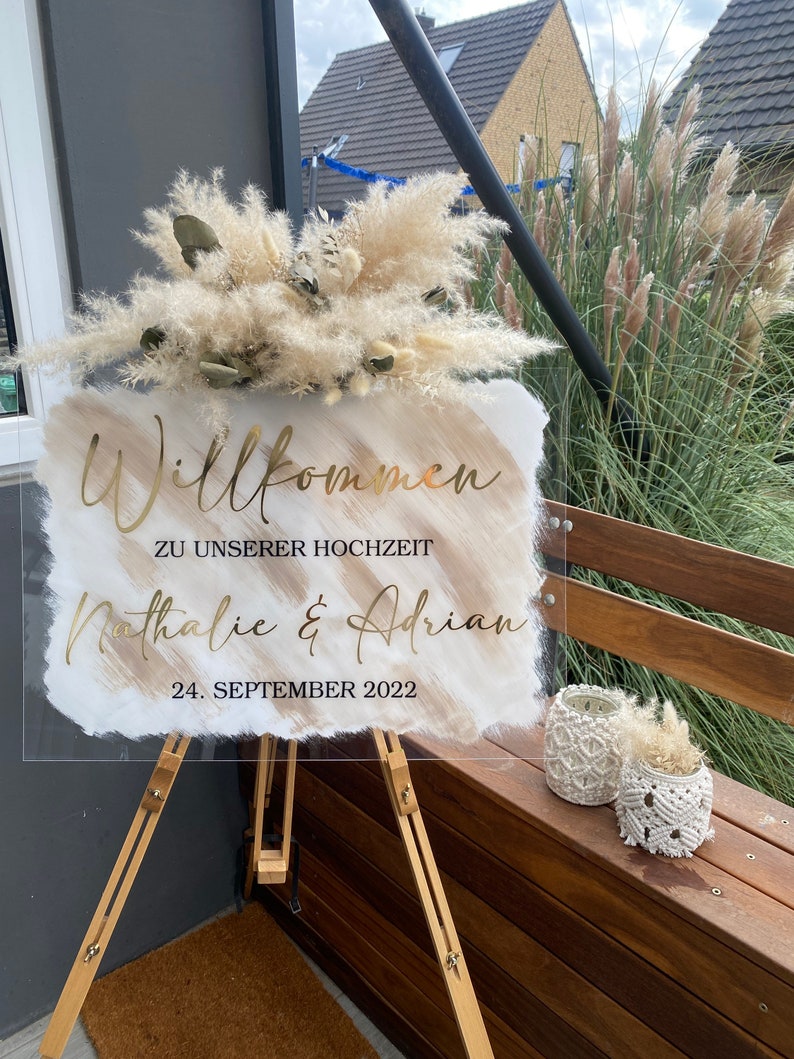 Also, wenn du deiner Hochzeit diesen persönlichen Touch verleihen willst, ist dieses individualisierbare Willkommensschild genau das Richtige. Ein Muss für jedes Brautpaar, das Wert auf persönliche Details legt!