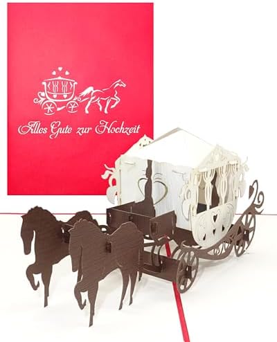 Wow, was für eine besondere Karte! Diese 3D Pop-Up Hochzeitskarte wird garantiert alle Blicke auf sich ziehen, wenn das Brautpaar sie öffnet.\n\nStell dir vor: Die Karte wird geöffnet und plötzlich entfaltet sich ein wunderschönes rosafarbenes Vintage-Hochzeitsauto mit 'Just Married'-Girlande und zarten Blumen. Ein richtiges kleines Kunstwerk!\n\nHergestellt aus hochwertigem FSC-zertifiziertem Karton mit filigranen Laserschnitt-Details. Die Farben leuchten richtig schön und die ganze Karte fühlt sich wertig an. Im Lieferumfang ist ein passender Umschlag und eine kleine Einlegekarte für deine persönlichen Glückwünsche enthalten.\n\nSuper praktisch: Du kannst Geldscheine oder Gutscheine stylisch in der Karte unterbringen. So wird dein Geldgeschenk zum echten Hingucker! Das Brautpaar wird begeistert sein - versprochen!\n\nPerfekt für alle, die nicht nur irgendeine Standard-Karte schenken wollen, sondern etwas Besonderes, das in Erinnerung bleibt. Eine tolle Alternative zu langweiligen Hochzeitskarten!