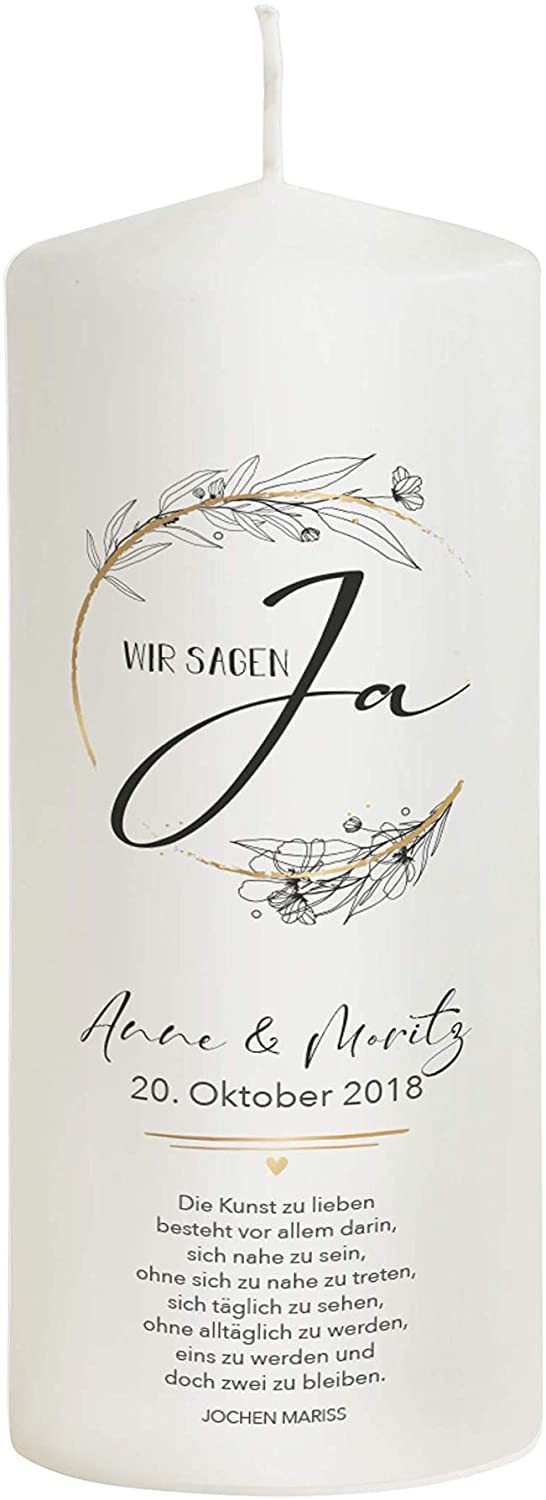 Herz & Heim® Hochzeitskerze Personalisiert - Weiße Stumpenkerze 7x20cm Mit Namen & Datum