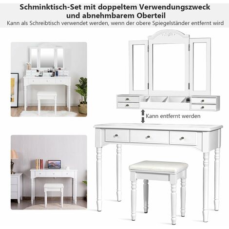 Aipunlus Schminktisch Mit Hocker Aus Massivholz - Vintage Frisiertisch Mit Schublade