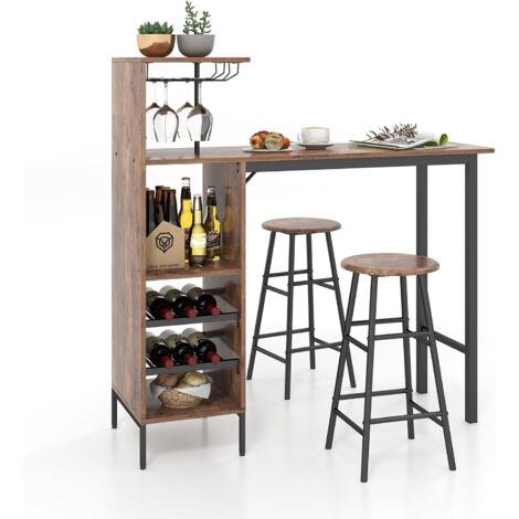 FurnitureR Bartisch Set Mit 2 Hockern - Industrieller Style 100x50x90cm Für Küche & Wohnzimmer