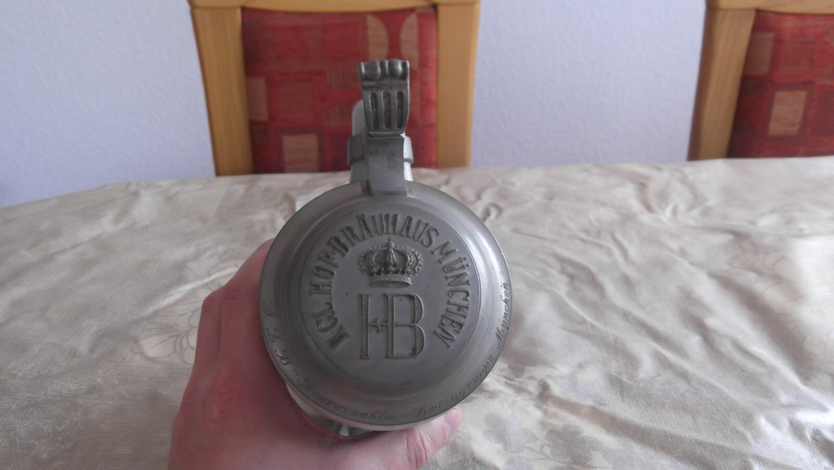 Hofbräuhaus München Stein Bierkrug 1 Liter Mit Zinndeckel - Original Maßkrug Löwendekor