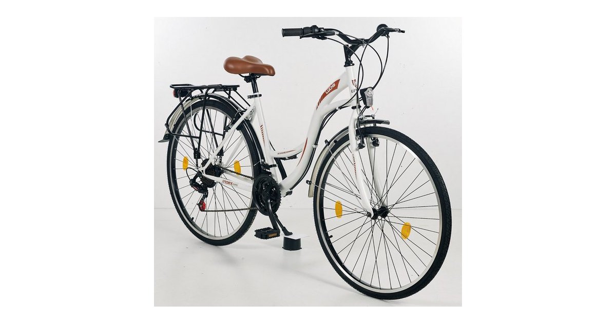 Sieh dir dieses schicke LUCHS Hollandrad an! In trendy Minzgrün mit braunen Akzenten ist es ein absoluter Hingucker. Mit 21 Gängen meisterst du damit locker jede Steigung und jede Strecke - ob in der Stadt oder auf Landstraßen. Der praktische Rattankorb ist abnehmbar und perfekt für Einkäufe oder deine Tasche. Die 28 Zoll Reifen sorgen für ein stabiles Fahrgefühl und die aufrechte Sitzposition ist super bequem, auch bei längeren Touren. Das Fahrrad kommt schon 80% vormontiert - mit dem mitgelieferten Aufbauvideo ist die Endmontage echt easy. Rahmenhöhe 50 cm passt ideal ab 165 cm Körpergröße. Komplett mit Beleuchtung für mehr Sicherheit im Straßenverkehr. Ein Qualitätsrad das lange hält - perfekt für den täglichen Einsatz!