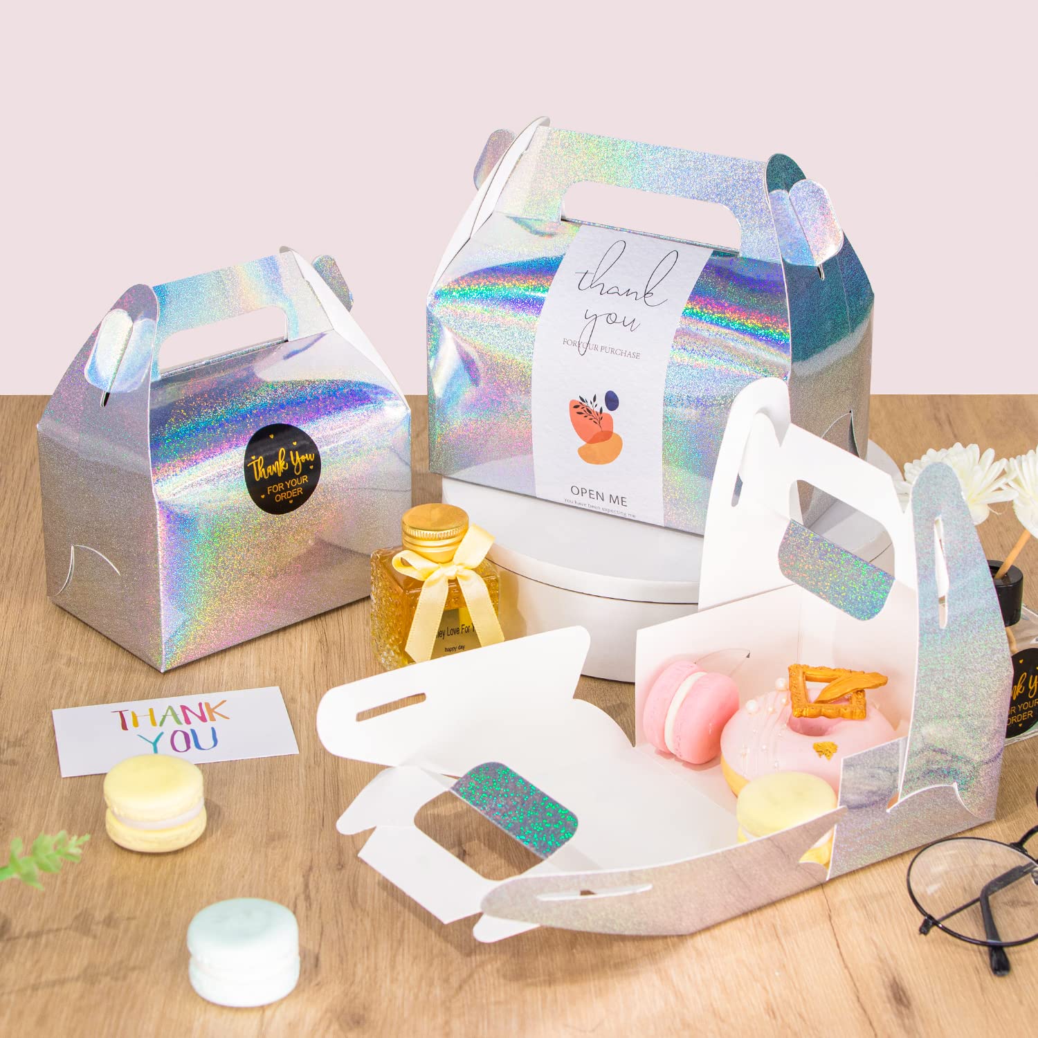 5 Stück Goldene Holographische Geschenkboxen - Für Kuchen, Süßigkeiten & Kekse, Wiederverwendbar